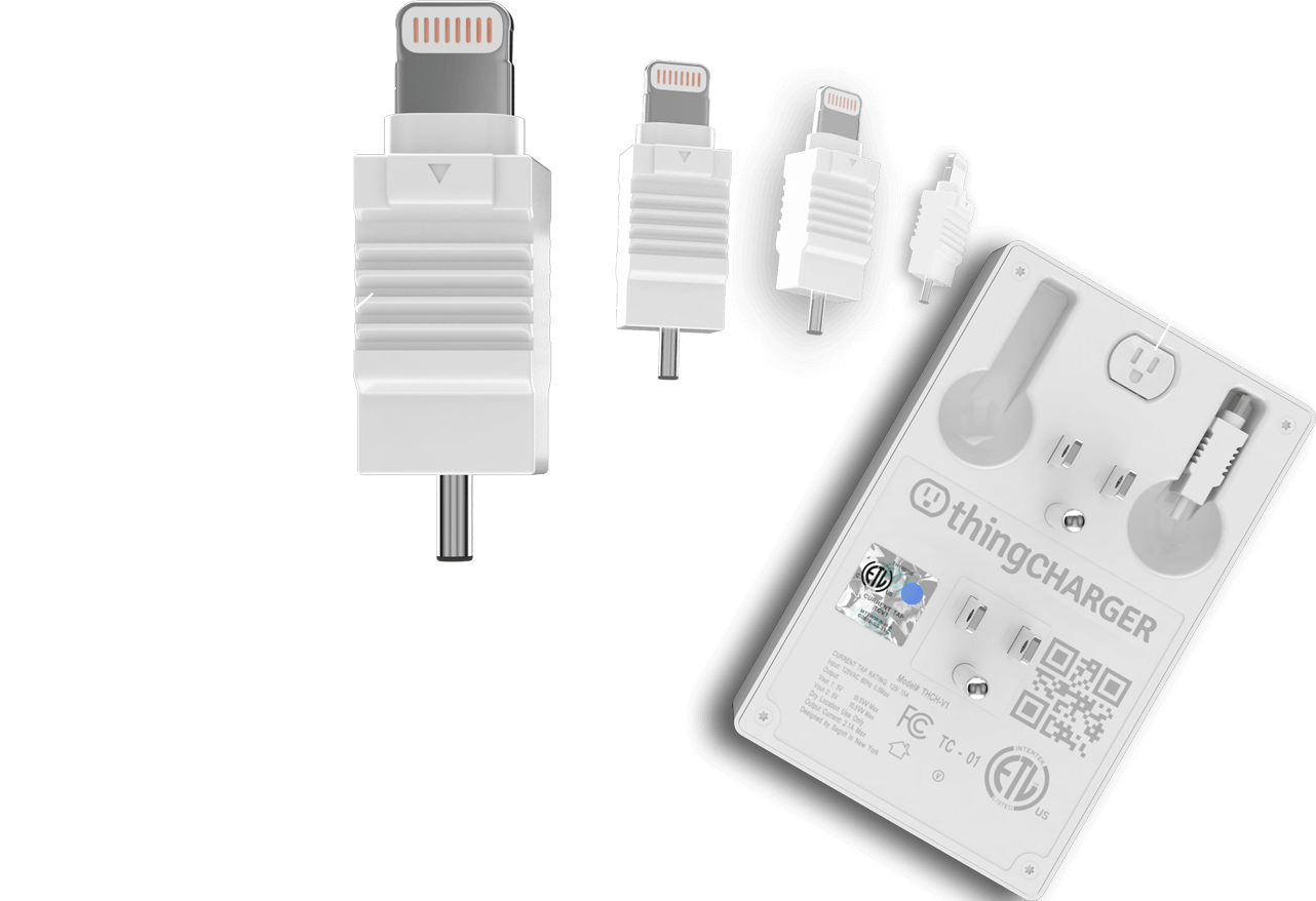 thingCHARGER’s MicroUSB and Lightning tips fit every device sold today. (A 30-pin is available for older Apple gear.)