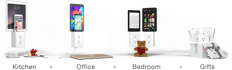 "Why did no-one think of thingCHARGERs before? I can charge my phone and tablet neatly together without using up any precious outlets or counter space — perfect at the office too. Awesome."